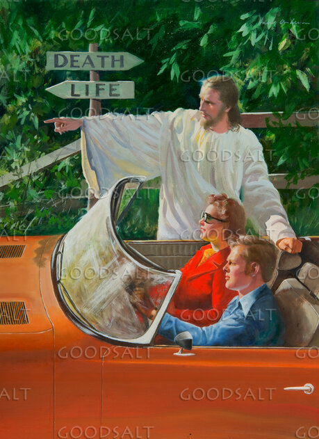 Jesus points the way for a young couple in an automobile by Review & Herald Publishing