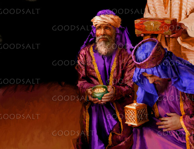 Wise men bring gifts to the baby messiah. by General Conference