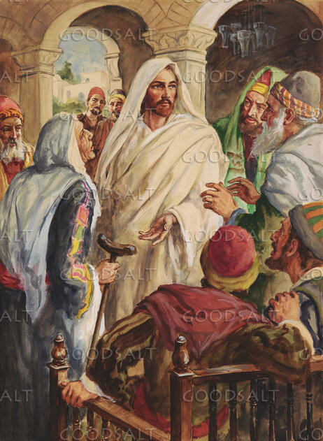 Luke 1310 Now he was teaching in one of the synagogues on the Sabbath.11 And there was a woman who had had a disabling spirit for eighteen years. She was bent over and could not fully straighten herself.12 When Jesus saw her, he called her over and said to her, “Woman, you are freed from your disability.”13 And he laid his hands on her, and immediately she was made straight, and she glorified God.14 But the ruler of the synagogue, indignant because Jesus had healed on the Sabbath, said to the people, “There are six days in which work ought to be done. Come on those days and be healed, and not on the Sabbath day.”15 Then the Lord answered him, “You hypocrites! Does not each of you on the Sabbath untie his ox or his donkey from the manger and lead it away to water it?16 And ought not this woman, a daughter of Abraham whom Satan bound for eighteen years, be loosed from this bond on the Sabbath day?”17 As he said these things, all his adversaries were put to shame, and all the people rejoiced at all the glorious things that were done by him. | |
