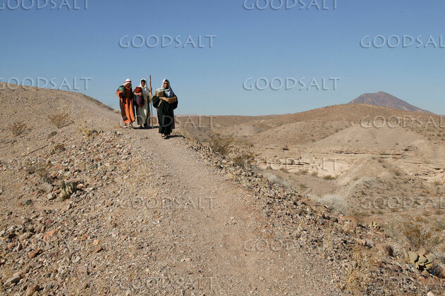 Three Isrealites walking down a path in the desert. One carrying a staff by Erik Stenbakken