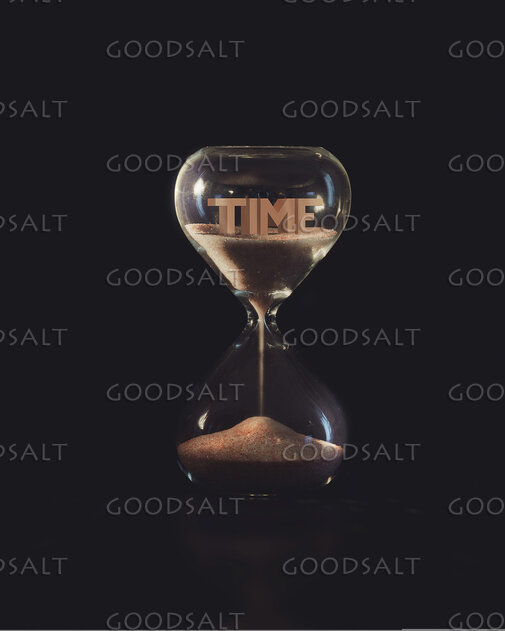 An hourglass with the word \"time\" inside. by Kevin Carden
