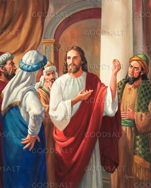 1. Render to Caesar Jesus with coin Pharisees in Temple