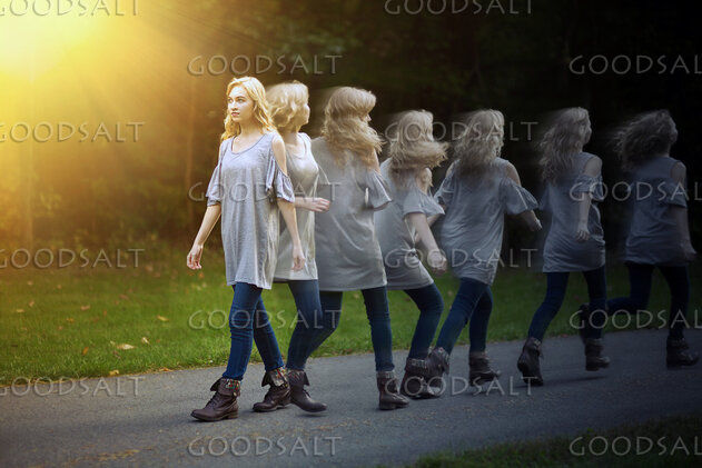A girl walks on a path even though she wants to turn around. by Kevin Carden
