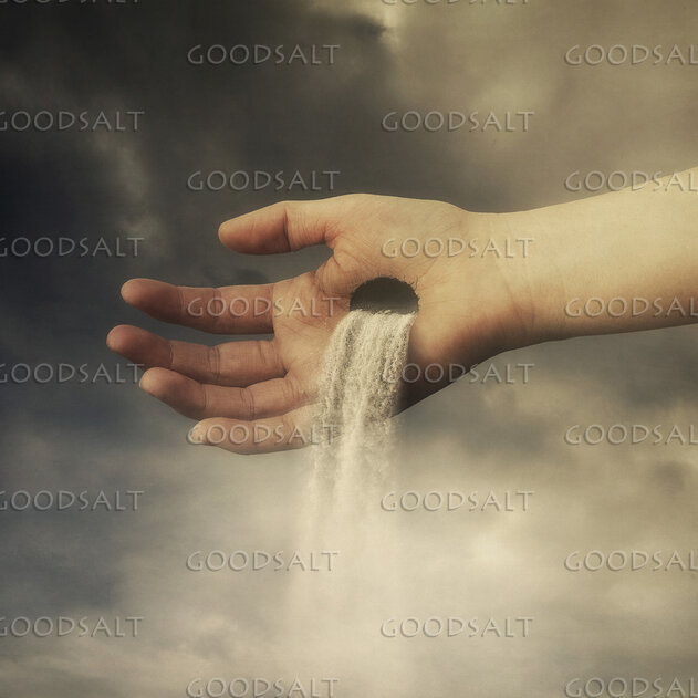 An abstract image of a waterfall coming from the hands with nail wounds. by Kevin Carden
