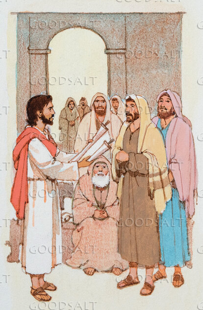 Jesus reads from a scripture scroll in the synagogue. by Lifeway Collection