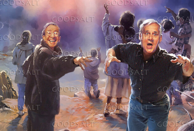 A contrast in attitudes- a man runs from the coming of the Lord in abject fear, while another man awaits with joy and thanksgiving by Lars Justinen