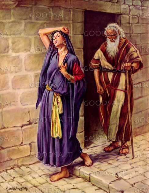 1 Kings 141 At that time Abijah the son of Jeroboam fell sick.2 And Jeroboam said to his wife, “Arise, and disguise yourself, that it not be known that you are the wife of Jeroboam, and go to Shiloh. Behold, Ahijah the prophet is there, who said of me that I should be king over this people.3 Take with you ten loaves, some cakes, and a jar of honey, and go to him. He will tell you what shall happen to the child.”4 Jeroboam's wife did so. She arose and went to Shiloh and came to the house of Ahijah. Now Ahijah could not see, for his eyes were dim because of his age.5 And the LORD said to Ahijah, “Behold, the wife of Jeroboam is coming to inquire of you concerning her son, for he is sick. Thus and thus shall you say to her.” When she came, she pretended to be another woman.6 But when Ahijah heard the sound of her feet, as she came in at the door, he said, “Come in, wife of Jeroboam. Why do you pretend to be another? For I am charged with unbearable news for you.7 Go, tell Jeroboam, ‘Thus says the LORD, the God of Israel: “Because I exalted you from among the people and made you leader over my people Israel8 and tore the kingdom away from the house of David and gave it to you, and yet you have not been like my servant David, who kept my commandments and followed me with all his heart, doing only that which was right in my eyes,9 but you have done evil above all who were before you and have gone and made for yourself other gods and metal images, provoking me to anger, and have cast me behind your back,10 therefore behold, I will bring harm upon the house of Jeroboam and will cut off from Jeroboam every male, both bond and free in Israel, and will burn up the house of Jeroboam, as a man burns up dung until it is all gone.11 Anyone belonging to Jeroboam who dies in the city the dogs shall eat, and anyone who dies in the open country the birds of the heavens shall eat, for the LORD has spoken it.”’12 Arise therefore, go to your house. When your feet enter the city, the child shall die.13 And all Israel shall mourn for him and bury him, for he only of Jeroboam shall come to the grave, because in him there is found something pleasing to the LORD, the God of Israel, in the house of Jeroboam.14 Moreover, the LORD will raise up for himself a king over Israel who shall cut off the house of Jeroboam today. And henceforth,15 the LORD will strike Israel as a reed is shaken in the water, and root up Israel out of this good land that he gave to their fathers and scatter them beyond the Euphrates, because they have made their Asherim, provoking the LORD to anger.16 And he will give Israel up because of the sins of Jeroboam, which he sinned and made Israel to sin.”17 Then Jeroboam's wife arose and departed and came to Tirzah. And as she came to the threshold of the house, the child died.18 And all Israel buried him and mourned for him, according to the word of the LORD, which he spoke by his servant Ahijah the prophet.19 Now the rest of the acts of Jeroboam, how he warred and how he reigned, behold, they are written in the Book of the Chronicles of the Kings of Israel.20 And the time that Jeroboam reigned was twenty-two years. And he slept with his fathers, and Nadab his son reigned in his place.21 Now Rehoboam the son of Solomon reigned in Judah. Rehoboam was forty-one years old when he began to reign, and he reigned seventeen years in Jerusalem, the city that the LORD had chosen out of all the tribes of Israel, to put his name there. His mother's name was Naamah the Ammonite.22 And Judah did what was evil in the sight of the LORD, and they provoked him to jealousy with their sins that they committed, more than all that their fathers had done.23 For they also built for themselves high places and pillars and Asherim on every high hill and under every green tree,24 and there were also male cult prostitutes in the land. They did according to all the abominations of the nations that the LORD drove out before the people of Israel.25 In the fifth year of King Rehoboam, Shishak king of Egypt came up against Jerusalem.26 He took away the treasures of the house of the LORD and the treasures of the king's house. He took away everything. He also took away all the shields of gold that Solomon had made,27 and King Rehoboam made in their place shields of bronze, and committed them to the hands of the officers of the guard, who kept the door of the king's house.28 And as often as the king went into the house of the LORD, the guard carried them and brought them back to the guardroom.29 Now the rest of the acts of Rehoboam and all that he did, are they not written in the Book of the Chronicles of the Kings of Judah?30 And there was war between Rehoboam and Jeroboam continually.31 And Rehoboam slept with his fathers and was buried with his fathers in the city of David. His mother's name was Naamah the Ammonite. And Abijam his son reigned in his place. | |