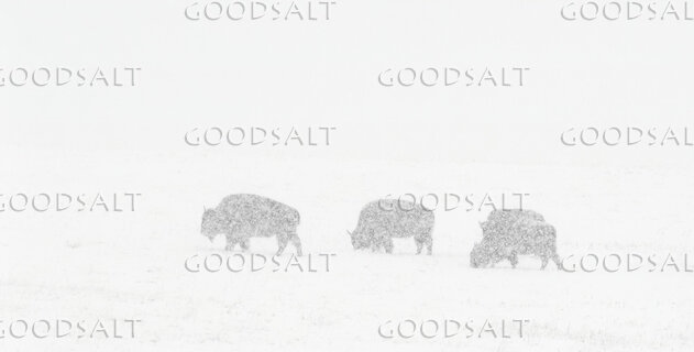 American Bison grazing in a snowstorm. by John Clement