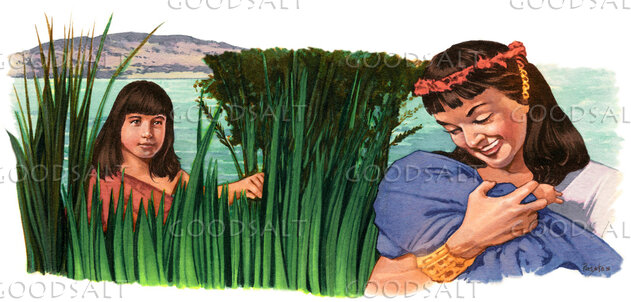 4 And his sister stood at a distance to know what would be done to him.5 Now the daughter of Pharaoh came down to bathe at the river, while her young women walked beside the river. She saw the basket among the reeds and sent her servant woman, and she took it.6 When she opened it, she saw the child, and behold, the baby was crying. She took pity on him and said, “This is one of the Hebrews' children.”7 Then his sister said to Pharaoh's daughter, “Shall I go and call you a nurse from the Hebrew women to nurse the child for you?”