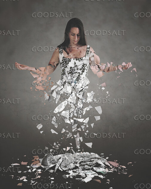 A woman shatters into hundreds of pieces of glass. by Kevin Carden
