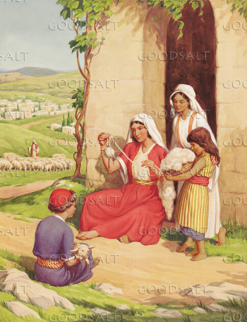 19 She puts her hands to the distaff, and her hands hold the spindle.20 She opens her hand to the poor and reaches out her hands to the needy.21 She is not afraid of snow for her household, for all her household are clothed in scarlet.22 She makes bed coverings for herself; her clothing is fine linen and purple.