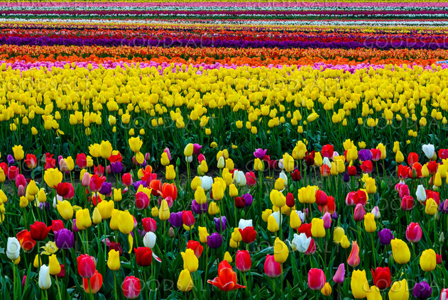 Looking across the rows of different colors of tulips at the Wooden Shoe Tulip Farm in Woodburn. by Mary Lane Anderson