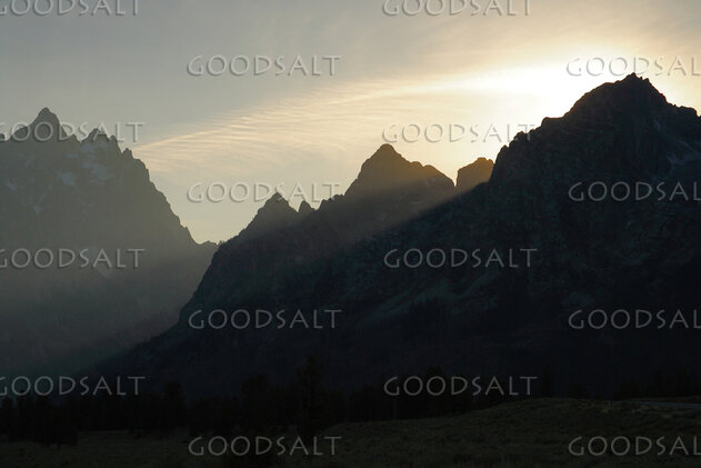 WYOMING. Teton National Park. Light rays over Teton mountain