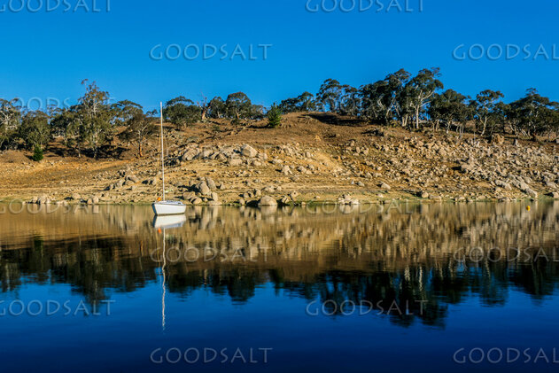 Yachts moored on a perfect still lake in the early morning crisp light. by Mal Austin