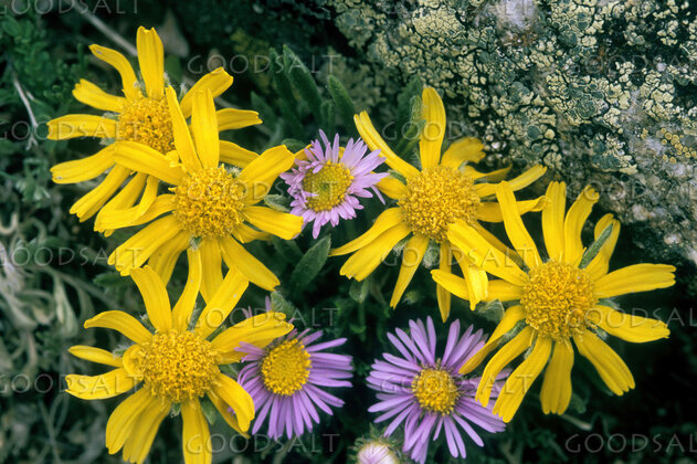 Yellow and Purple Daisies With Licken Close-Up