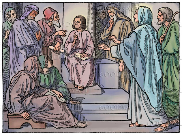Young Jesus in the temple, teaching the scholars. by Justinen Creative